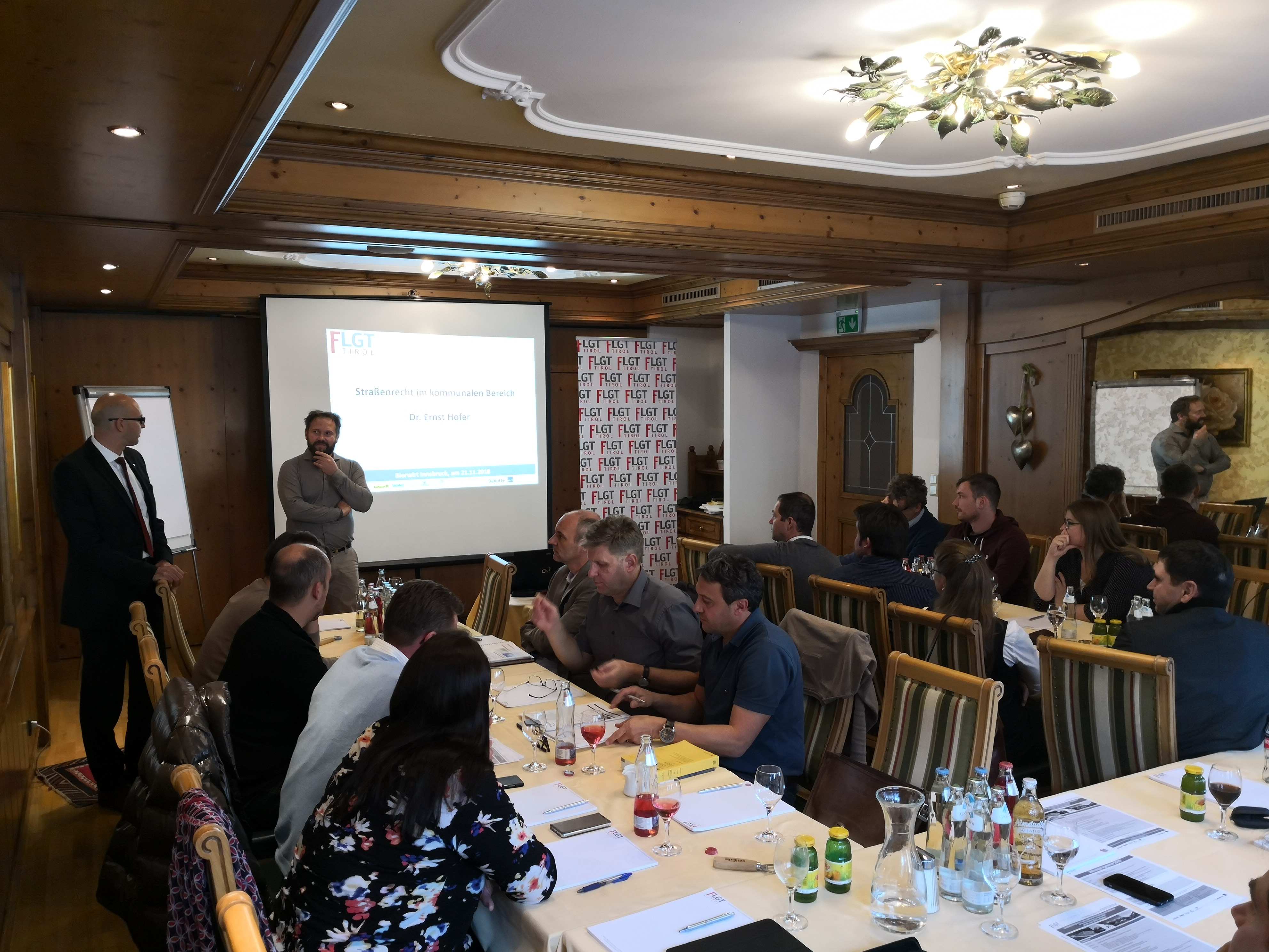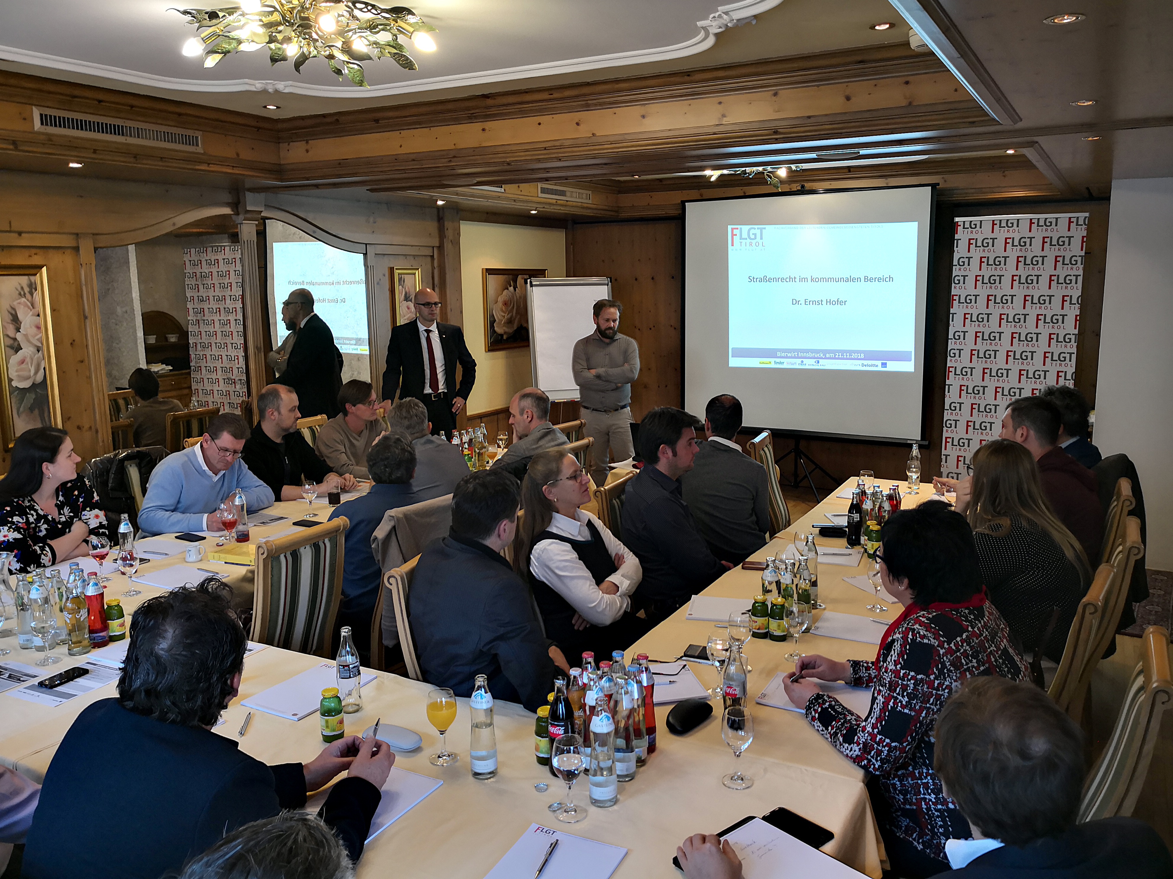 28 BürgermeisterInnen, GemeindeamtsleiterInnen und VerwaltungsmitarbeiterInnen aus den Tiroler Gemeinden haben am Mittwoch, den 21.11.2018 im Bierwirt Innsbruck bei der FLGT-Veranstaltung zum Thema „Straßenrecht im kommunalen Bereich“ teilgenommen.